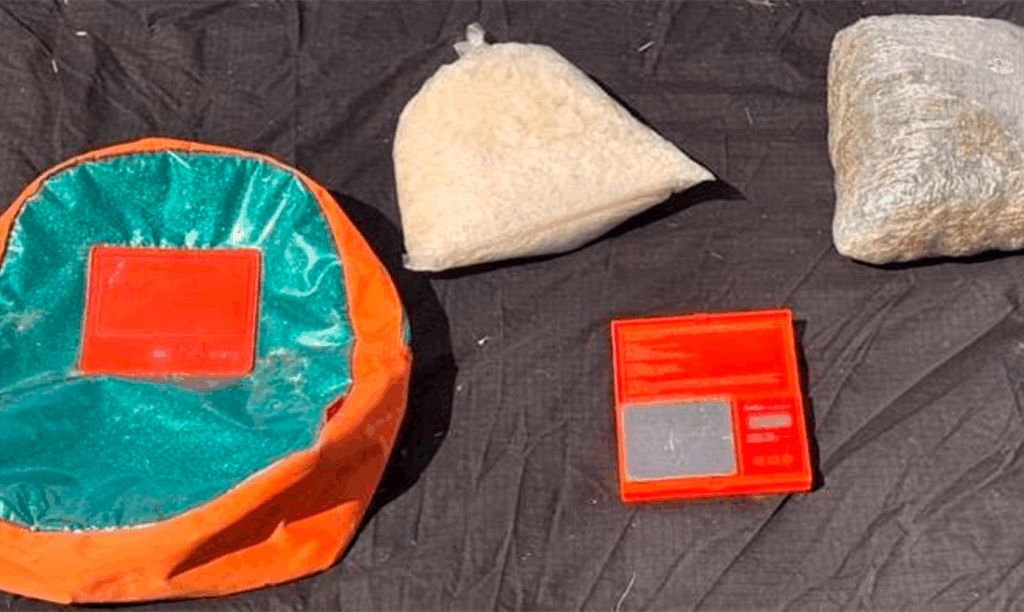 Posteriormente, en el municipio de Huetamo, sobre la carretera Zitácuaro-Ciudad Altamirano fue localizada en estado de abandono una mochila con dos envoltorios que contenían 900 gramos de aparente metanfetamina y 500 gramos de marihuana.