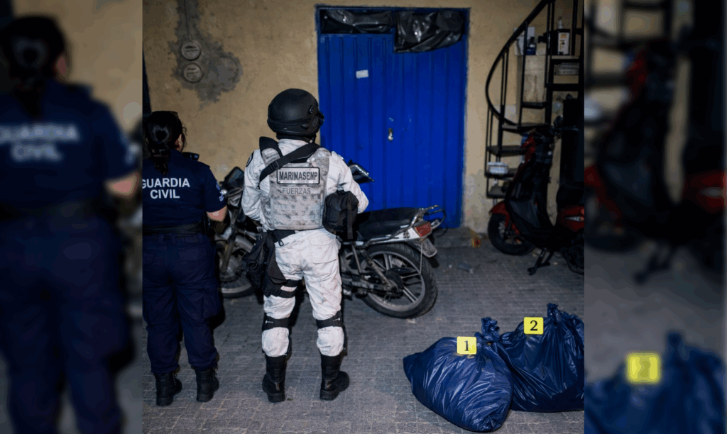El primer hecho se registró en el municipio de Carácuaro donde agentes acompañaron a la FGE en la cumplimentación de una orden de aprehensión. El hecho se registró en un inmueble de la calle Fermín Mercado Rocha, en donde se detuvo a un hombre en posesión de dos bolsas plásticas que en su interior contenían cuatro kilogramos de marihuana.
