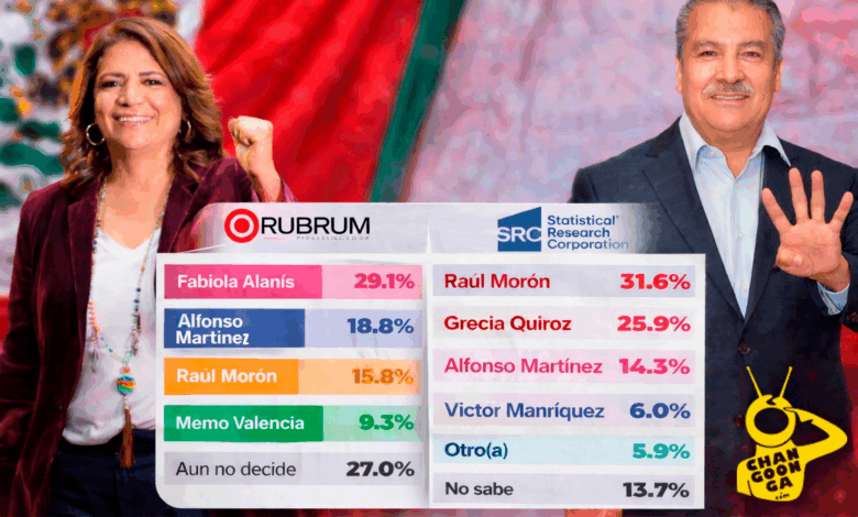 Por otro lado, en otras encuestas los resultados se intercalan. En una medición de FactoMétrica realizada en mayo de 2025, Fabiola Alanís aparece como la principal figura con 35.2%, superando a Raúl Morón, quien se ubica con 16.5%. Un escenario similar se observa en el sondeo de Rubrum, donde Alanís encabeza con 29.1%, seguida por Morón con 15.8%, reflejando la alternancia existente entre ambos contendientes.