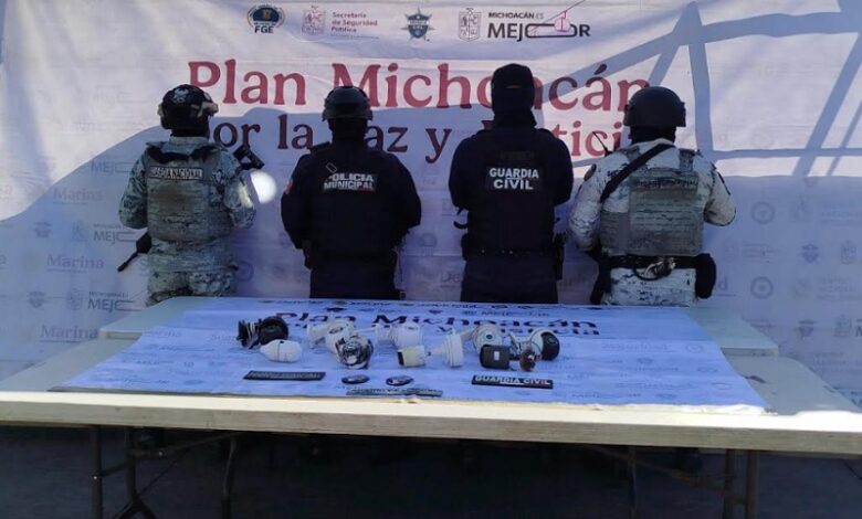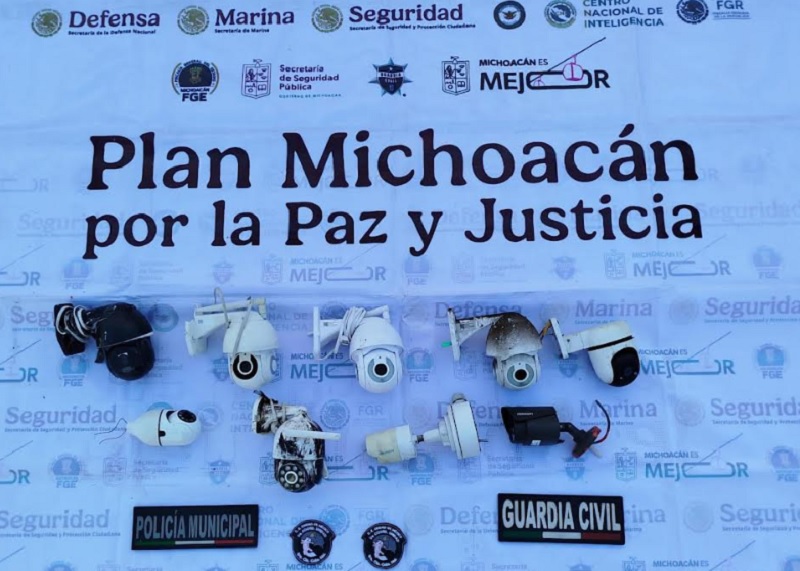 Resultado de un operativo interinstitucional coordinado entre los elementos de la Secretaría de Seguridad Pública (SSP), de la Guardia Nacional (GN), y la Policía Municipal de Jacona, se aseguró un circuito de videovigilancia conformado por nueve cámaras, presuntamente utilizado por un grupo de la delincuencia organizada.