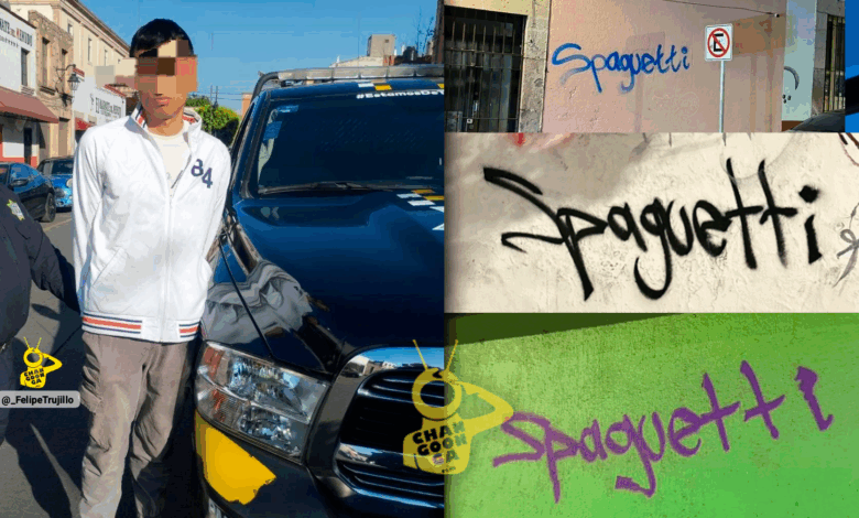 Al acudir al lugar para atender la situación, elementos de seguridad habrían identificado al joven, quien coincidía con características previamente recabadas en investigaciones relacionadas con las pintas que portan la firma “Spaguetti”.
