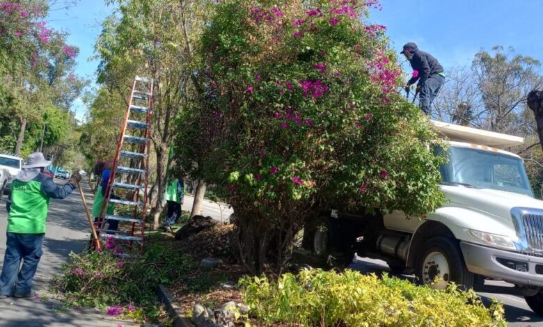 De igual forma, se continua con el mantenimiento integral en la Calzada Juárez, que incluye poda sanitaria de árboles, poda general de árboles, poda específica de camelinas, limpieza general con deshierbe y riego de las áreas verdes para garantizar su salud y buen estado.