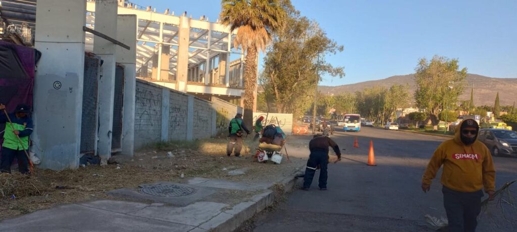 También se lleva a cabo poda de pasto en el Parque Lineal Bicentenario, avanzando desde la calle Jacarandas hasta Combate de Salamanca, en la colonia Ampliación Leandro Valle. Este corredor verde es fundamental para la movilidad peatonal y el disfrute familiar.
