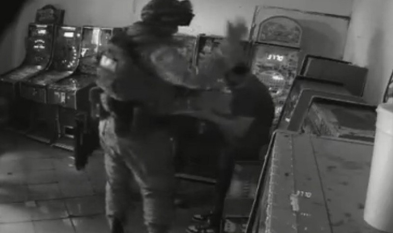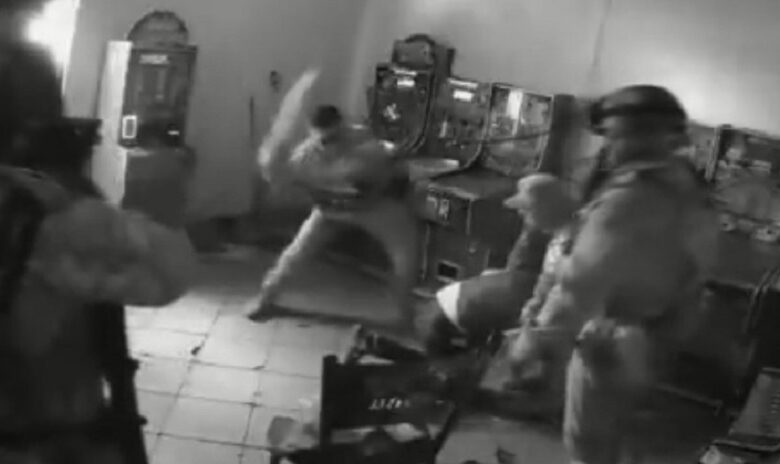 En redes sociales se ha viralizado un video de cámaras de seguridad de presuntos elementos del Ejército Mexicano agrediendo a un muchacho, encargado de un negocio de máquinitas tragamonedas.