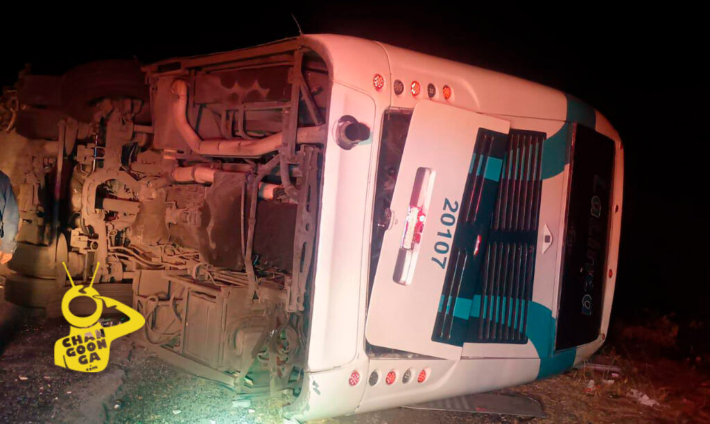 A unos 27 metros de la pesada unidad se encontraba un autobús de la empresa “La Línea”, color blanco, de doble piso, número económico 20107 y placas 723JV6 del servicio público federal, volcado sobre su costado derecho. La unidad presentaba daños severos en el frente y lateral izquierdo, tras impactarse contra la estructura calcinada del tráiler.