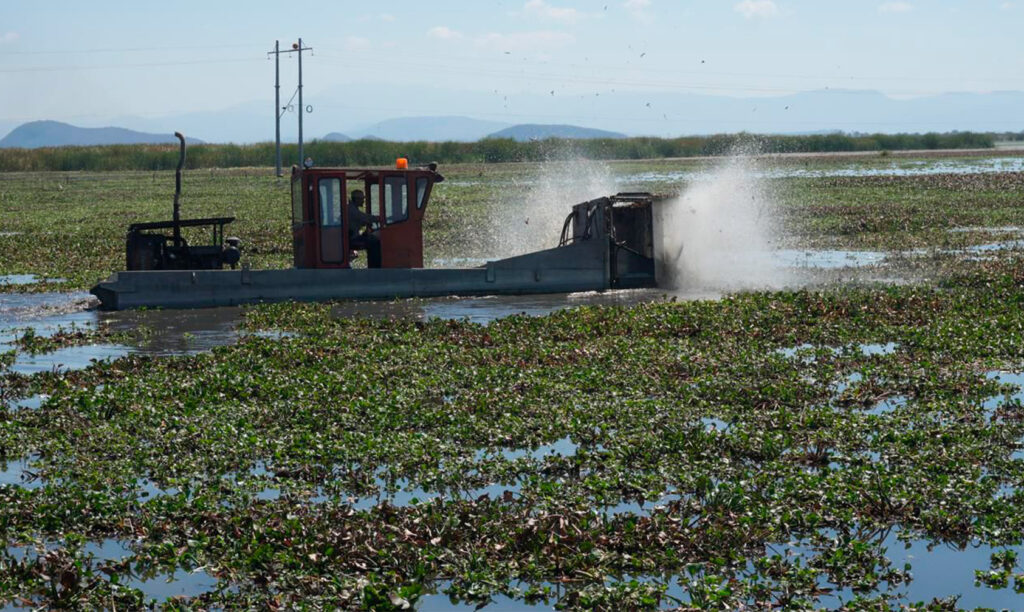 La intervención contempla la extracción de lirio acuático y tule, vegetación que afecta la navegabilidad, disminuye la oxigenación del agua y reduce las zonas productivas para la pesca.