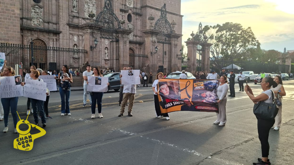 “Lo único que pedimos es que se esclarezcan los hechos y que se haga justicia para mi hijo”, expresó el padre ante los manifestantes, quienes portaban cartulinas, fotografías y consignas en memoria de Jareth.
