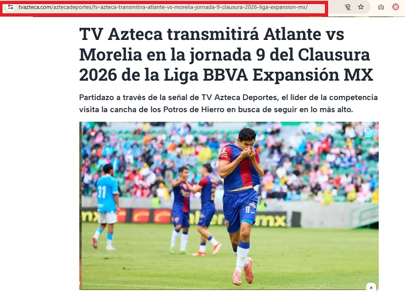 Aprovechando que TV Azteca transmite los juegos de los Potros de Hierro del Atlante, este fin de semana se medirá al equipo michoacano: “te traemos un compromiso con tintes de clásico en la Liga de Expansión. El equipo azulgrana recibirá al Atlético Morelia en el Agustín Coruco Díaz, club que es líder de la tabla general con 16 unidades y solo un partido perdido tras siete partidos disputados” anunció la televisora.