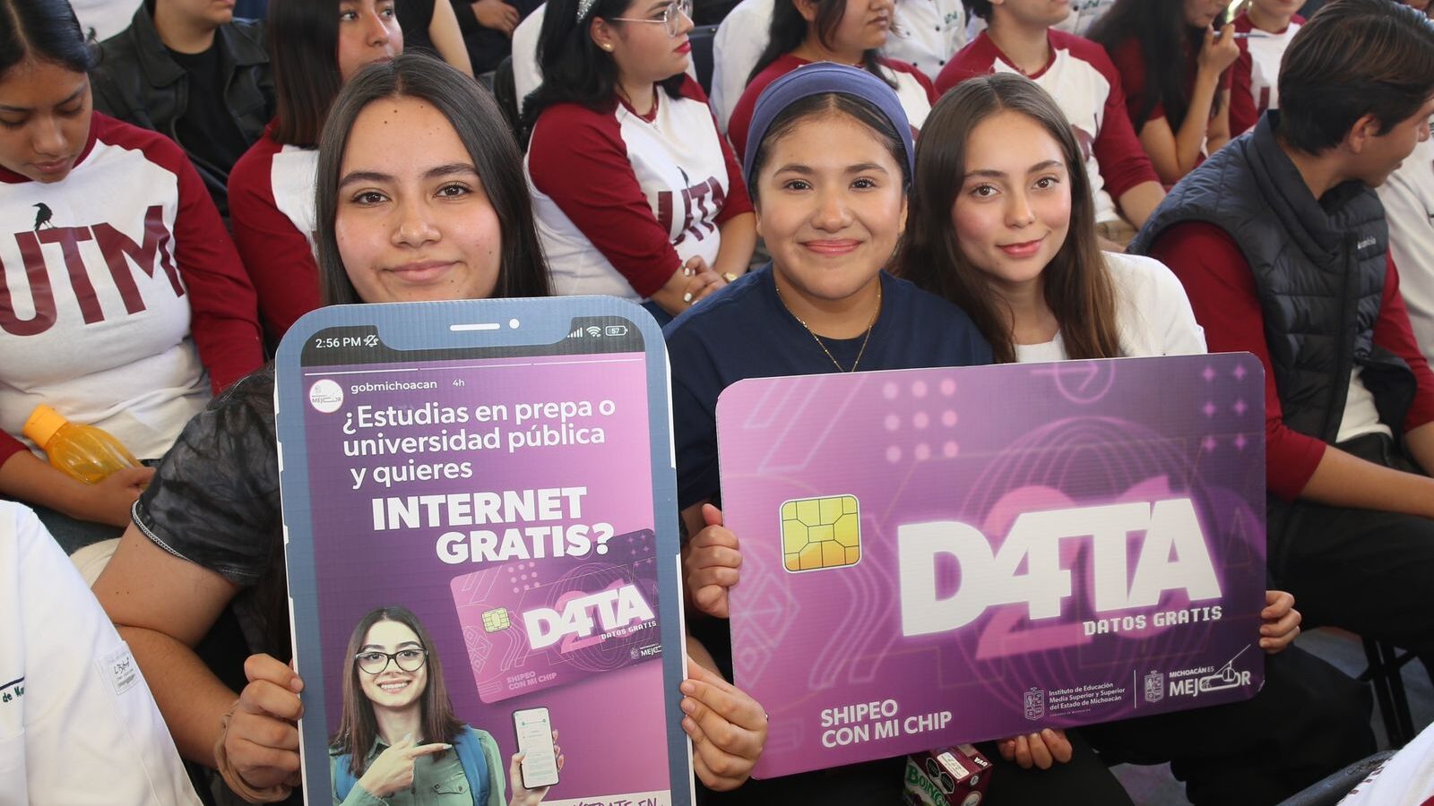 En la Universidad Tecnológica de Morelia (UTM), el gobernador Alfredo Ramírez Bedolla llamó a estudiantes de preparatorias, institutos tecnológicos y universidades públicas de todo el estado a que aprovechen los últimos días de registro al Programa Data, que les ofrecerá 4GB de internet gratuito al mes con acceso a redes sociales, mensajes y llamadas ilimitadas, para fortalecer su formación académica.