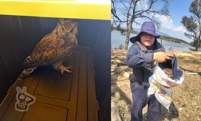 Elementos de la Policía Morelia atendieron el reporte de un búho lesionado en las inmediaciones de la Presa de Cointzio.