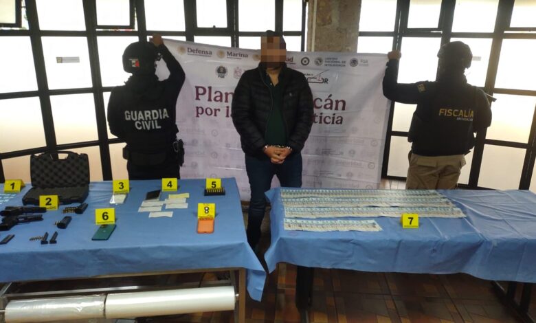 #Morelia Tras Cateo En Domicilio SSP Apaña A Vato Con 18 Bolsitas De Meta, Arma Y Casi 100 Mil Varos