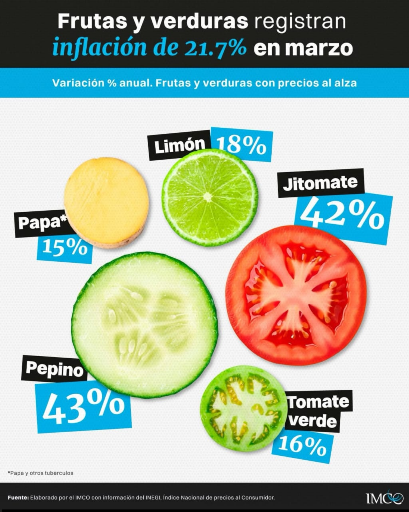 El organismo advierte que, hasta ahora, las frutas y verduras concentran el mayor impacto inflacionario, con un incremento anual de 21.7 por ciento.