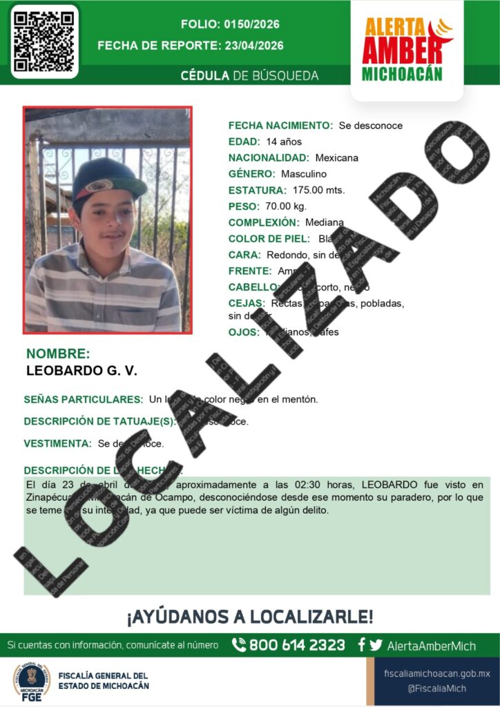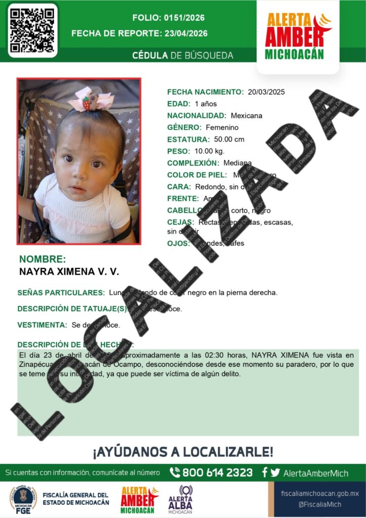 Como resultado de las diligencias realizadas y del protocolo de localización desplegado por personal especializado, el 24 de abril de 2026 se logró ubicar a las víctimas, quienes fueron localizadas con bien y resguardadas.