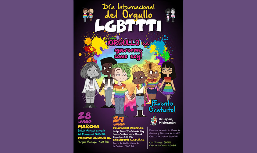 En el marco de la conmemoración del Día Internacional del Orgullo LGBTTTI, la comunidad lésbico, gay, transgénero, travesti, transexual e intersexual de Uruapan en coordinación con el H. Ayuntamiento, realizarán los días 28 y 29 de junio diversas actividades artísticas y culturales.