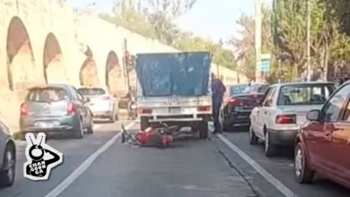 STAFF/@michangoonga/RED-113 Un motociclista resultó lesionado tras chocar contra la retaguardia de una camioneta cuando circulaba sobre la avenida Acueducto, al…