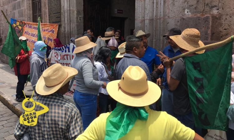 Al menos 50 personas integrantes del Frente Nacional de Lucha Por El Socialismo (FNLS) se manifiestan frente al Ayuntamiento de Morelia en busca de una audiencia con el alcalde Raúl Morón Orozco.