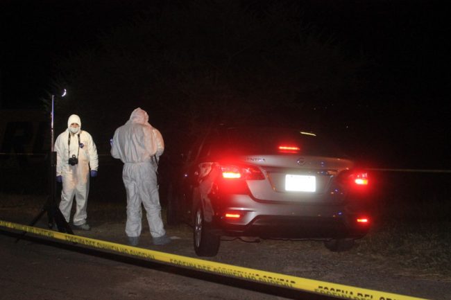 Tras confirmar la situación los oficiales acordonaron el lugar para evitar la contaminación de indicios. El automotor en mención es un Nissan Sentra, de reciente modelo, color acero, matrícula PFX-555- L, al cual se le apreciaba estrellada por impacto de bala la ventana del lado del piloto.