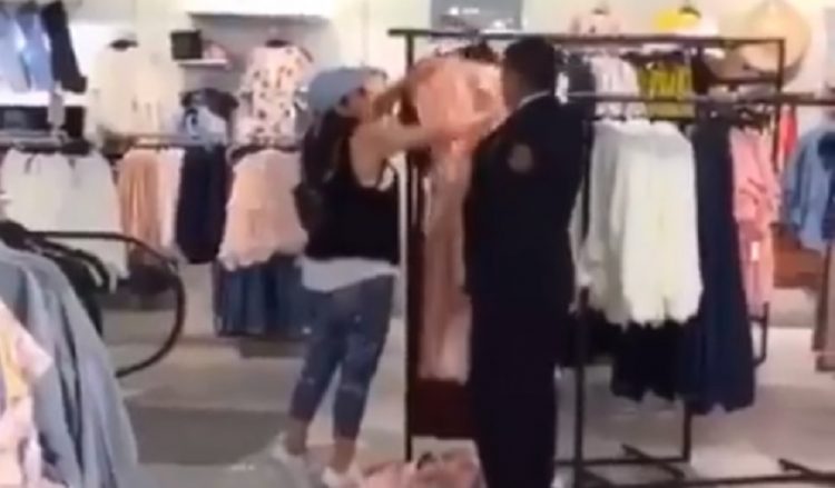En la grabación se ve cómo la chava comienza a aventar la ropa mientras le dice al empleado: “Estoy buscando una talla que me quede” y posteriormente acusa que toda la ropa en dicha tienda está “chiquita”.