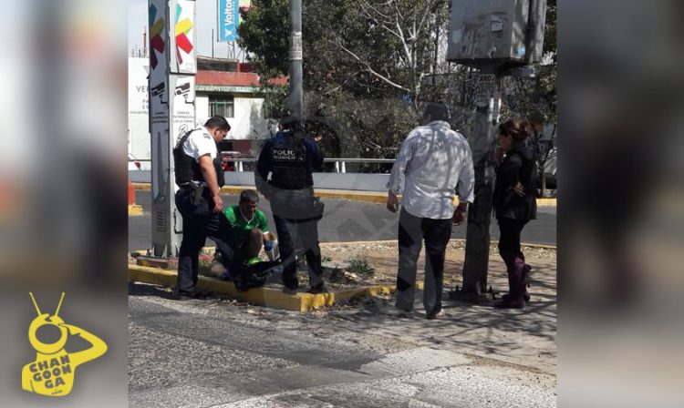 En estado muy alterado al encontrarse aparentemente bajo el influjo de drogas, la tarde de este jueves un malabarista que suele ponerse en la esquina de calzada Juárez y av. Solidaridad fue detenido por agentes de la Policía Municipal luego de que el sujeto agredió a varios automóvilistas.