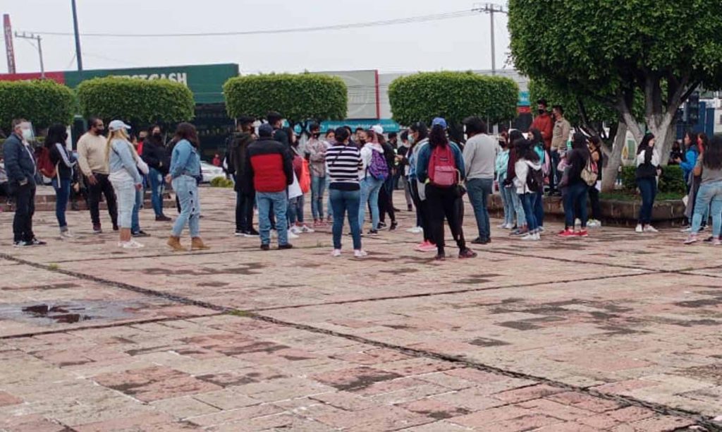 La Policía Michoacán de Tránsito y Movilidad arribo al lugar donde los jóvenes están concentrados para manifestarse, por segundo día consecutivo en la semana y por tercera semana.
