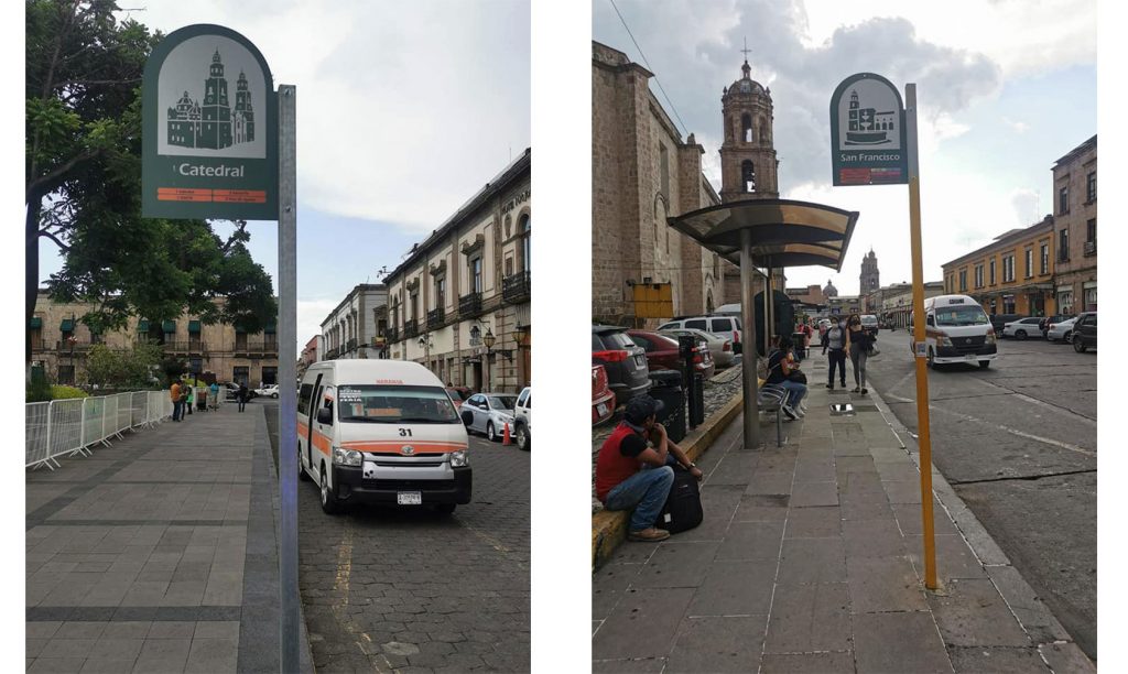 Antes de finalizar el actual gobierno de Morelia 2018-2021, pues resulta que, para garantizar y mejorar las condiciones de tránsito al usar el transporte público, las autoridades han colocado señalamientos en paradas oficiales: Catedral, San Francisco, Lázaro Cárdenas, Camelinas y La Colina.