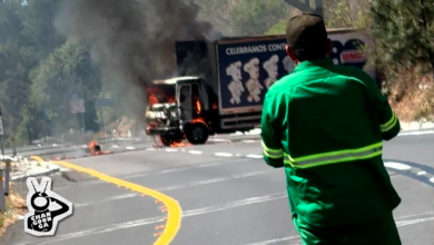 STAFF/@michangoonga/RED-113 Un camión repartidor de la empresa Bimbo fue atravesado e incendiado sobre la autopista Siglo XXI, a la altura…