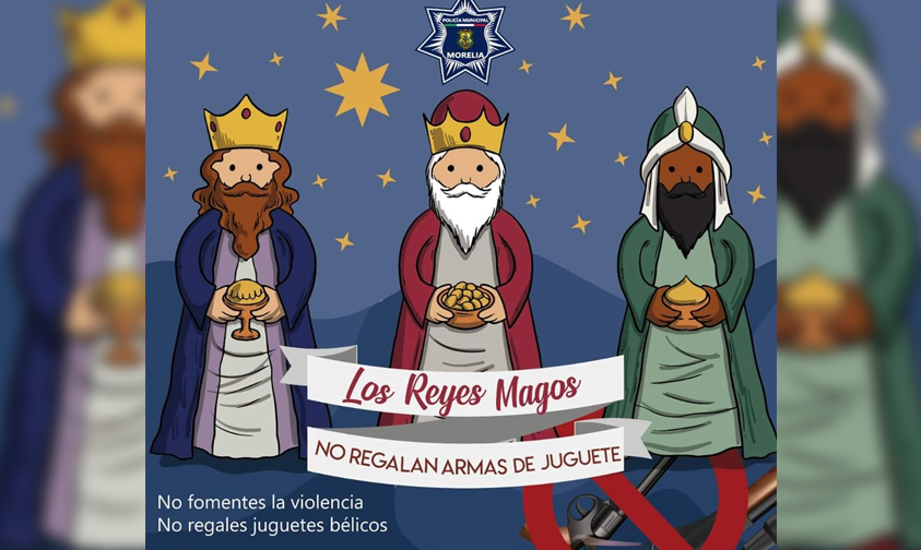 La instancia responsable de impartir Justicia Cívica en Morelia, invitó a la población a sumarse a la campaña de prevención en redes sociales “Los Reyes Magos no regalan armas de juguete” con la finalidad de que los infantes cuenten con juguetes que permitan el desarrollo de ciudadanos honestos, de valores y principios solidarios.