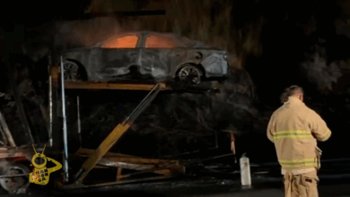 STAFF/@michangoonga/RED-113 Un voraz incendio consumió el segundo remolque de un camión nodriza, dejando calcinados 5 vehículos nuevos que eran trasladados…