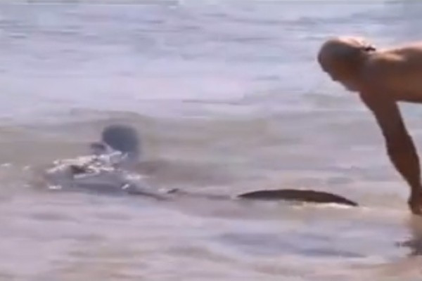De repengte una sirena sonó para avisar que un tiburón se acercaba a la playa, ante lo cual el turista, apoyado por varias personas más, logró agarrar al escualo de casi dos metros por la cola y arrastrarlo lejos de la costa, donde jugaban los niños.
