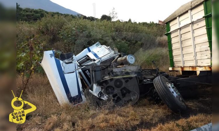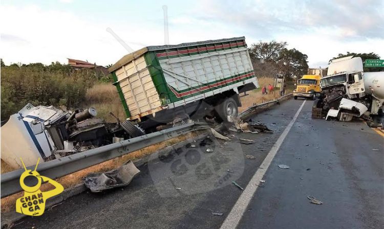 Poco antes de llegar a la desviación a Uruapan, fue impactado por una pipa, con razón social de Súper Servicio Gasolineras del Sur, de Tacámbaro, y un tráiler con caja metálica y placas, 64-UB-3B del servicio público federal.