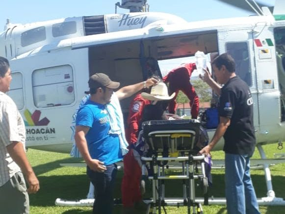 El estado crítico del paciente alertó a los paramédicos respondientes, quienes solicitaron la intervención del CRUM para la gestión de un helicóptero a la Dirección de Servicios Aéreos del Gobierno del Estado, el cual interceptó en el trayecto carretero a la ambulancia, para llevar al herido, vía aérea, al Hospital Civil de la capital michoacana.