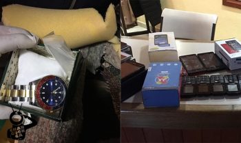 Además, 40 teléfonos celulares de diferentes marcas y modelos; 99 mil 100 dólares americanos en billetes de distintas denominaciones, y ocho relojes finos -dos de éstos de la marca Rolex-.