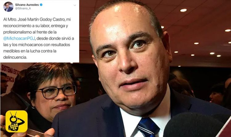 El día de hoy domingo al mediodía el gobernador del Estado de Michoacán, Silvano Aureoles, realizó una felicitación al ahora ex procurador de la entidad, José Martín Godoy Castro por su lucha contra la delincuencia.