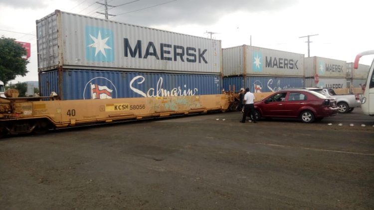 Según comentaron internautas denunciantes, se dice que la causa de que el tren esté detenido es que la maquinaria se llevó un camión en el libramiento; aunque al momento no se ha confirmado la versión.
