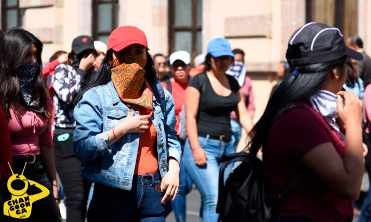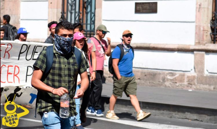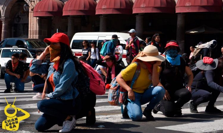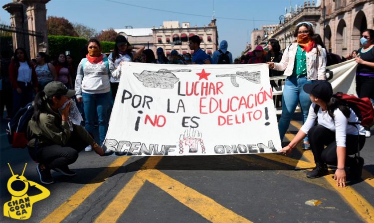 “¡A las mujeres del estado las quieren desaparecer, pero nosotros con luchan y sangre las vamos a defender!”, son los gritos que acompañan en este momento a la marcha que llevan a cabo estudiantes de las Normales Urbana, de Educadoras y de Educación Física (ENEF).