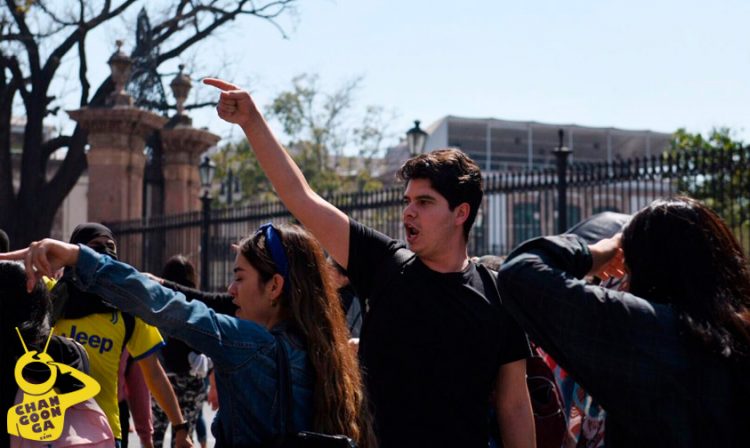 Manifestando su apoyo a los paros de la UNAM, entre consignas feministas como “Vivas se las llevaron, Vivas las queremos”, “Ni una más, Ni una asesinada más” y algunas otras como “UNAM aguanta, las normales se levantan”, “de norte a sur ganaremos nuestra lucha cueste lo que cueste” muestran su apoyo incondicional movimiento estudiantil.