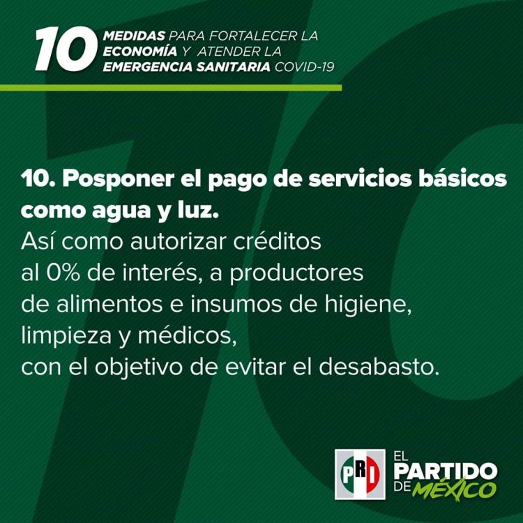 Propone PRI 10 Medidas Para Fortalecer La Economía, Durante La Emergencia Por El Covid-19