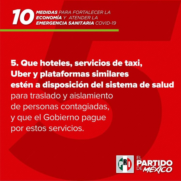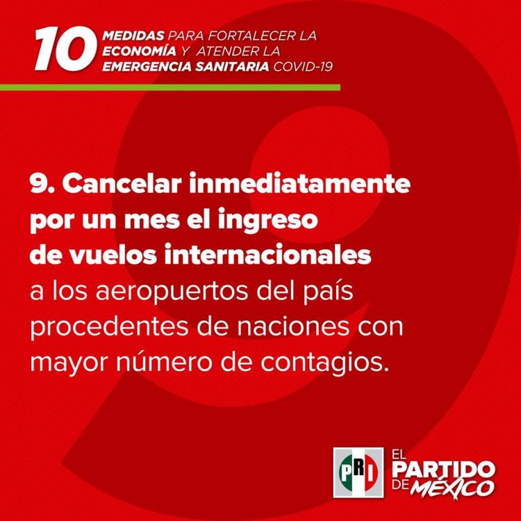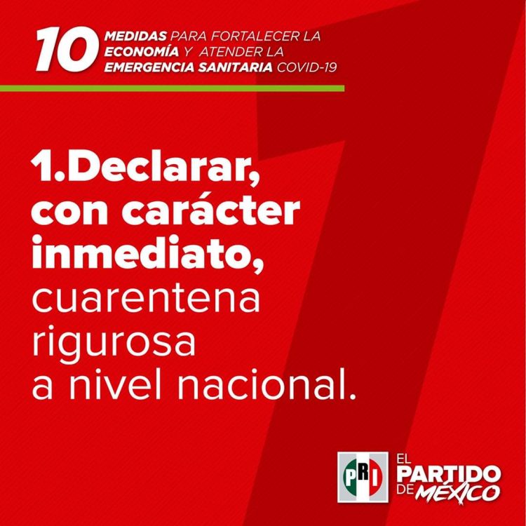 El presidente del Comité Ejecutivo Nacional (CEN) del Partido Revolucionario Institucional (PRI) y de la COPPPAL, Alejandro Moreno, propuso un paquete de 10 medidas para fortalecer la economía nacional y coadyuvar con la emergencia sanitaria, por la pandemia del coronavirus (COVID-19).