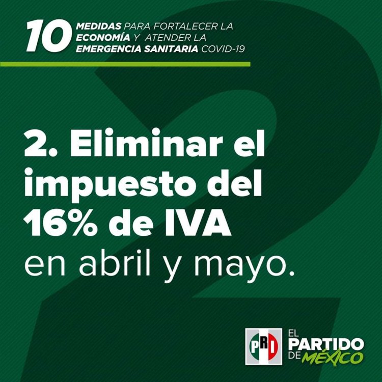 - Eliminar el impuesto de 16 por ciento de IVA en abril y mayo.