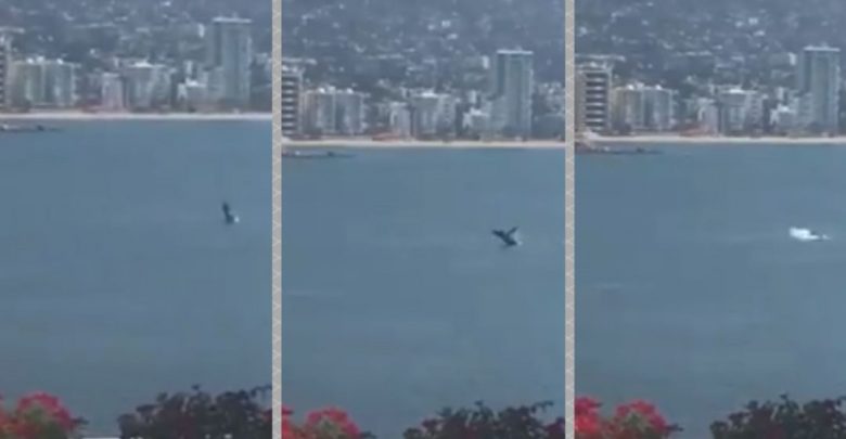 Las imágenes de la ballena fueron captadas por un turista desde el balcón de su habitación en un hotel a pie de playa, en el video se observa como la ballena emerge del agua con su característico movimiento hacia atrás y salta sobre el agua para volver a sumergirse provocando una explosión de espuma blanca a su alrededor.