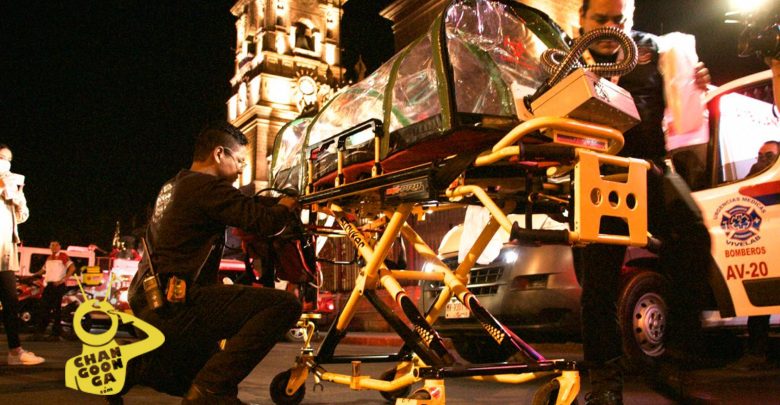 En conjunto con paramédicos atravesaron sus unidades sobre la avenida Madero, en el primer cuadro de la ciudad, dejando libres dos carriles para circulación, acto seguido realizaron un pequeño simulacro mediante el apoyo de una cápsula para atender enfermos de COVID-19.
