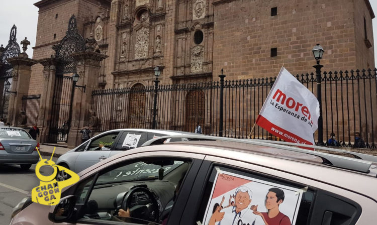 La caravana de la capital michoacana partió de las inmediaciones de Ciudad Universitaria (CU) y de ahí siguieron su camino hacia el Obelisco a Lázaro Cárdenas para continuar sobre la Avenida Madero, pasando sonando sus claxons con banderas ondeantes en honor a AMLO.