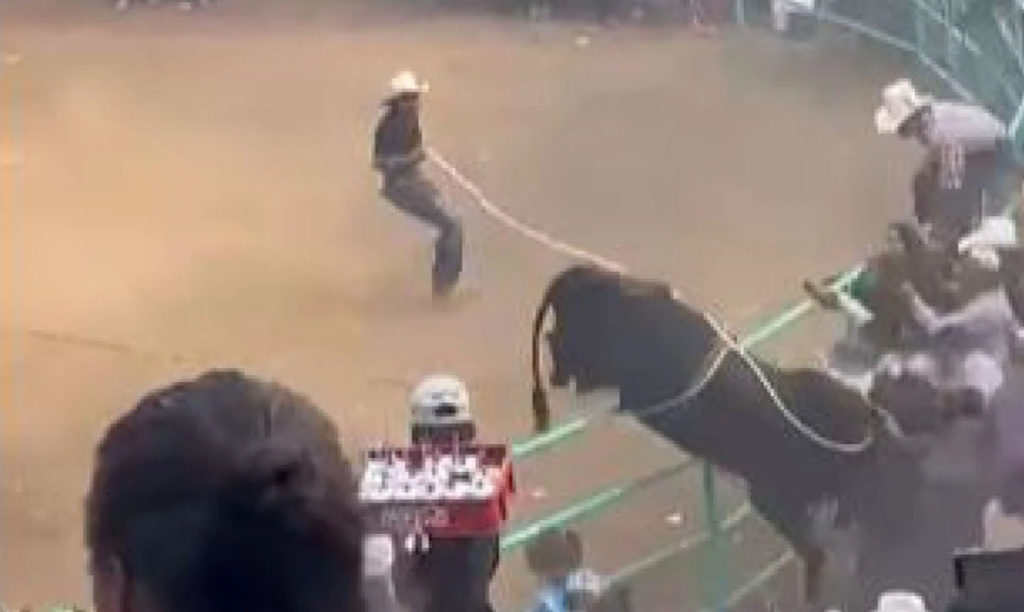 Por medio de redes sociales se han compartido los momentos de pánico que se vivieron en un jaripeo realizado en Zirahuén, Michoacán pues un toro de reparo saltó el ruedo y se fue a la zona del público.