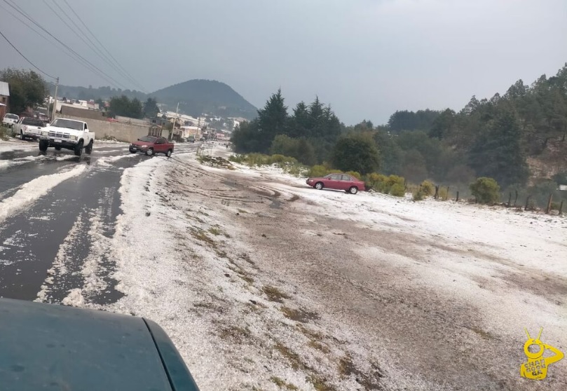 La tarde de este domingo, cayó una atípica granizada en esta población de San Isidro, donde convergen los municipios de Nahuatzen, Erongarícuaro y Zacapu, en la meseta purhépecha; no se reportan daños.