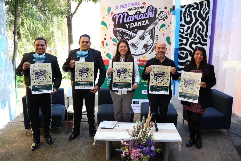 La capital del estado se viste de colores patrios y como parte del programa de actividades, el Ayuntamiento que encabeza el Alcalde, Alfonso Martínez Alcázar, a través del Colegio de Morelia anunció en voz de su director general, Iván Fernando Barrales Alcántara los pormenores del X Festival Nacional Mariachi y Danza 2023, a realizarse en el teatro Chucho Monge el próximo domingo 10 de septiembre, desde las 16:00 horas, evento gratuito que contará con venta de artículos de emprendedores, emprendedoras y antojitos mexicanos.