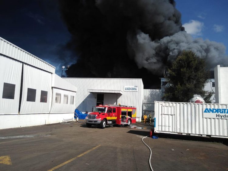 Debido a la naturaleza de los productos que ahí se fabrican y a la diversidad de químicos propios de esa industria, las llamas han alcanzado alturas importantes y, por consiguiente, las columnas de humo son densas y prolongadas.