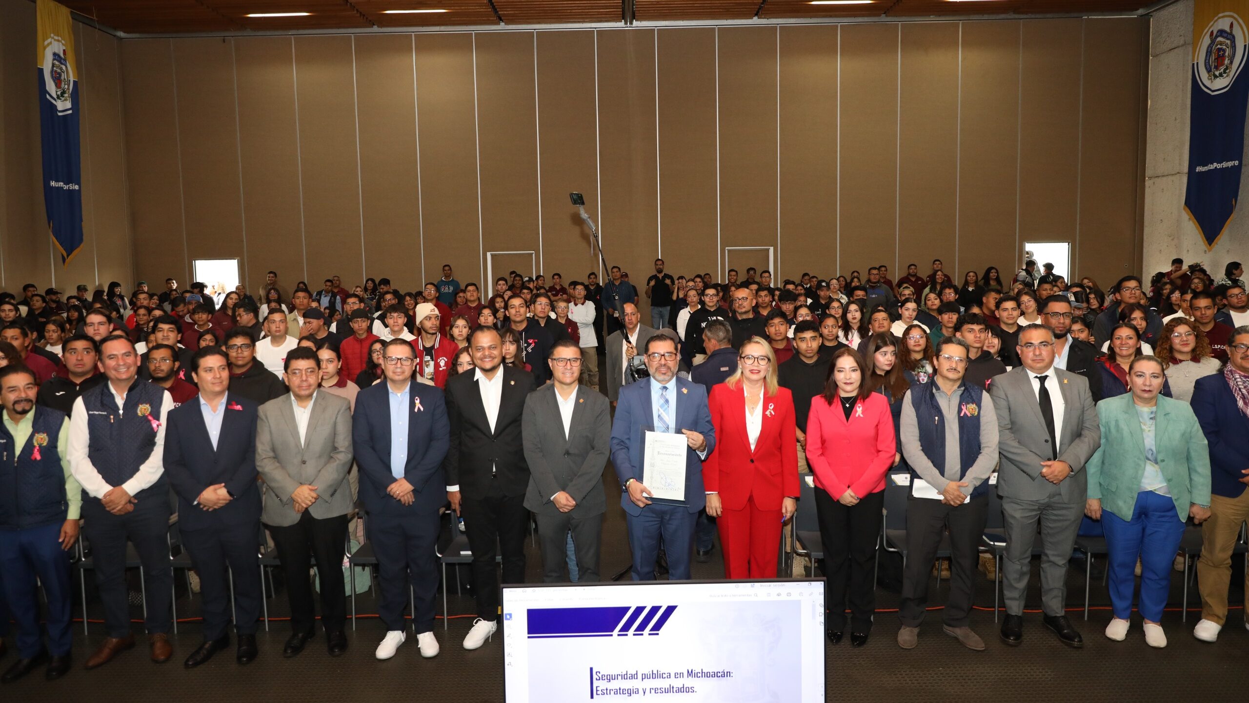 Ante las y los estudiantes, apuntó que seguramente muchos de ellos podrán ser parte de la SSP, y también los futuros funcionarios y funcionarias de gran responsabilidad, de grandes valores que se forman en la Universidad Michoacana, “y que con el apoyo y la vinculación de todas las dependencias e instituciones fortalecen a las y los estudiantes para que sean profesionistas mucho más preparados, más decisivos, pero sobre todo excelentes ciudadanos”.
