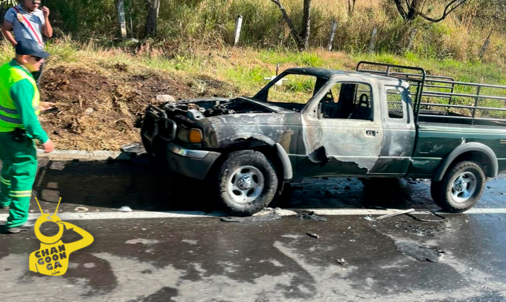 Finalmente, en el kilómetro 100 ya en las cercanías de la caseta de cobro de Taretan una camioneta particular comenzó a incendiarse en el área del motor, por o que su conductor se detuvo en el acotamiento y descendió para ponerse a salvo.