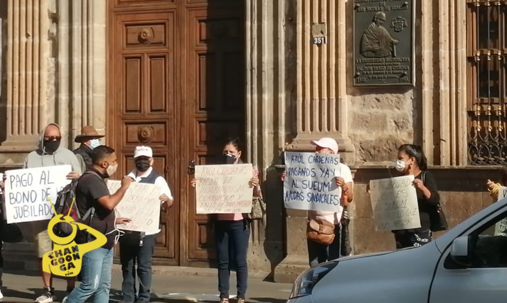 Los manifestantes señalan que se debe dar atención a sus demandas, así como los pagos de bonos a jubilados. La manifestación está integrada por trabajadores de las bibliotecas, así como personal de limpieza, por lo que piden al rector Raúl Cárdenas dar solución.