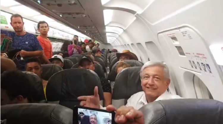 López Obrador llegó a las 10:20 horas a la Terminal 2, subió al avión, se tomó fotografías con algunos pasajeros y, al momento de tomar su asiento en la fila 13, y el piloto le hizo la singular petición.